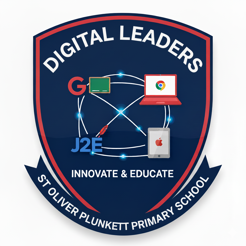 Our Digital Leaders are a dedicated team of pupils who are passionate about technology and committed to helping our school thrive in the digital world. These tech-savvy students take the initiative to learn new skills across various platforms and devices, including Google Classroom, Chromebooks, J2E, and iPads. They play a vital role in supporting both staff and their fellow pupils, offering a helping hand with digital tasks, troubleshooting minor issues, and sharing their knowledge to enhance everyone's learning experience. They are our go-to experts, fostering a confident and capable digital community within St Oliver Plunkett Primary School